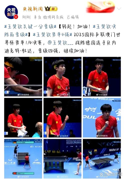比赛中,王楚钦面对强大的对手,毫不畏惧,保持冷静的头脑,灵活应对,他的技艺精湛,无论是发球、接发球,还是攻防转换,都表现得淋漓尽致,他的反应速度和球路预判能力,让他在比赛中占据优势,他还展现出了顽强的毅力,无论面对何种困境,都能坚持到底,永不放弃。