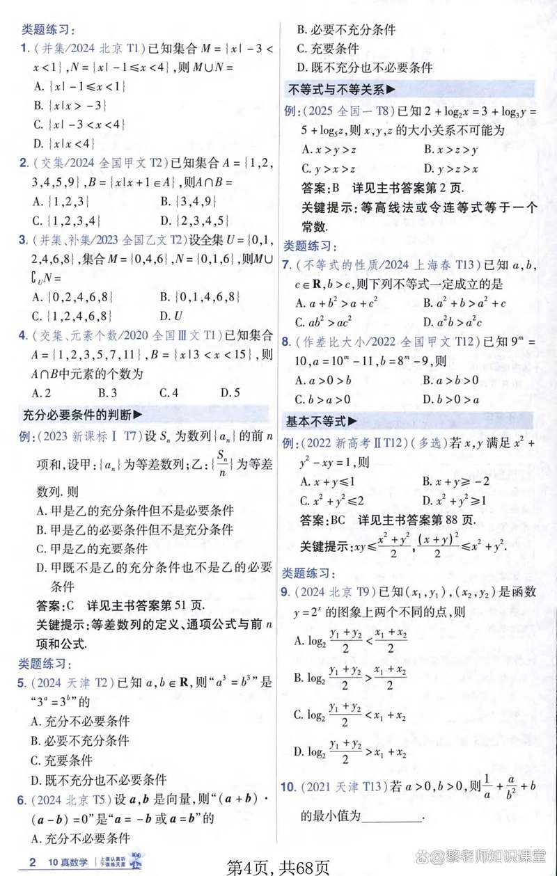 三角函数章节命题涉及三角恒等变换、解三角形及图像性质;集合与逻辑章节则考察集合运算和命题逻辑,如果课程包括导数,命题可能涉及导数计算、极值问题和切线方程。
