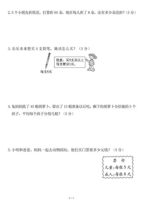 辅导要点 我认为辅导这类题目时,重点应该放在帮助孩子建立解题思路上,而不是单纯追求正确答案,让孩子先读懂题目,找出关键数字,确定使用什么运算方法,最后进行检查,生活中可以随时创设类似情境,比如去超市前算算预算能买多少物品,这样数学就变得生动实用了。