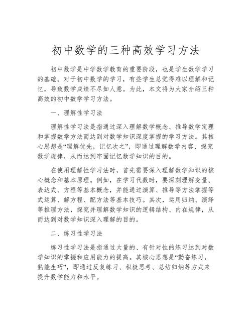 数学是初中阶段的核心学科,高效学习数学不仅能提升学业成绩,更能培养逻辑思维、分析能力和解决问题的技能,对于初中生而言,数学内容从算术转向代数、几何等抽象领域,因此掌握高效学习方法显得尤为重要,通过科学策略和持续努力,学生可以克服挑战,享受数学学习的乐趣,为高中乃至未来的学习打下坚实基础。
