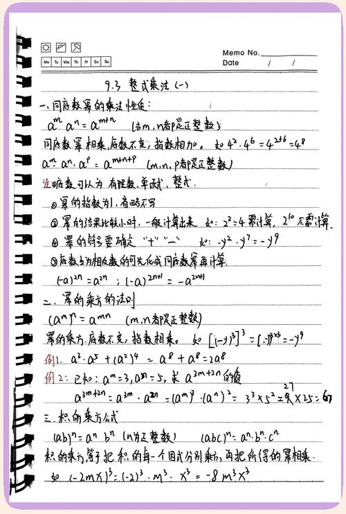 数学笔记在初中学习阶段扮演着至关重要的角色,它不仅是课堂知识的记录,更是复习、理解和应用数学概念的工具,对于初中生而言,数学学科逐渐引入更多抽象思维和逻辑推理,如代数、几何和概率等内容,这使得笔记的梳理变得尤为关键,一份干净、结构良好的数学笔记能帮助学生快速回顾重点,提升学习效率,并在考试前节省大量时间,许多初中生在记笔记时往往面临杂乱无章、重点不突出或遗漏关键信息等问题,学会如何梳理数学笔记,不仅能巩固知识,还能培养良好的学习习惯,为未来的数学学习打下坚实基础,本文将从重要性、原则、步骤、工具和常见错误等方面,详细探讨如何梳理初中数学笔记,旨在为学生提供实用、可操作的指导。