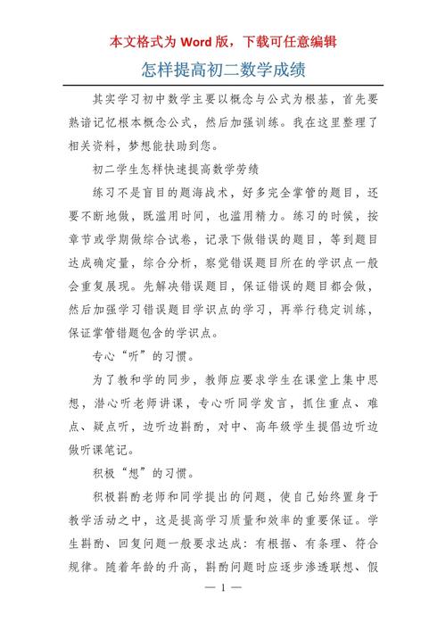 提高初中数学成绩需要综合努力:扎实的基础、良好的习惯、高效的方法和积极的求助,只要持之以恒,不断调整策略,每个学生都能在数学上取得进步,数学不仅是一门学科,更是一种思维训练,掌握它将受益终身,从现在开始,行动起来,用耐心和坚持迎接数学挑战吧!