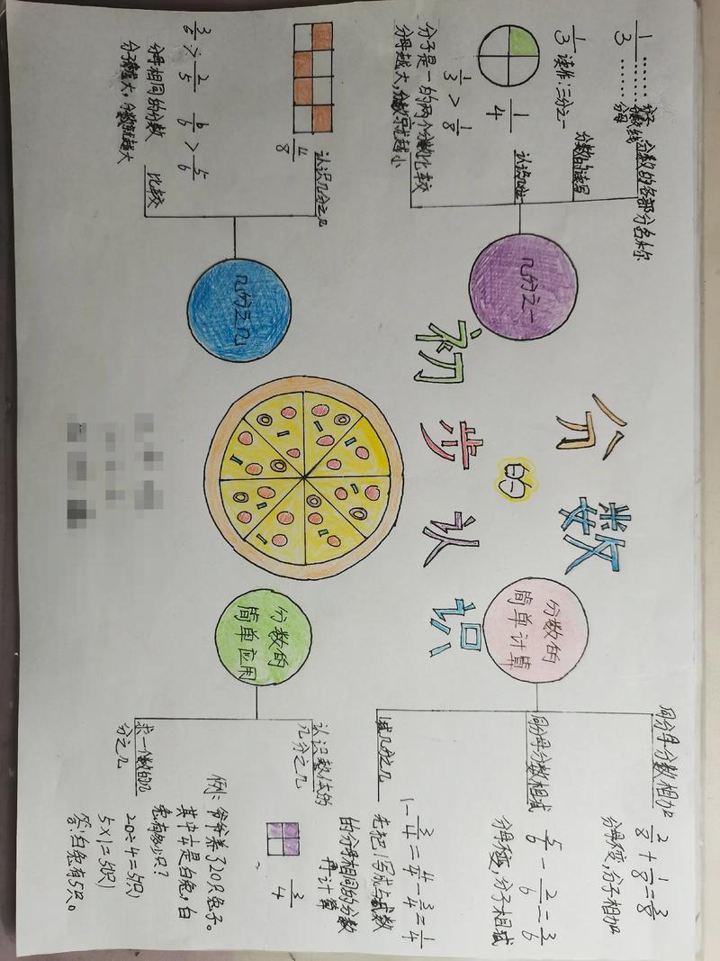 在每个主要分支下,进一步扩展子分支,添加具体细节和实例,在“基本运算”分支下,可以分出“加法”、“减法”、“乘法”和“除法”,并为每个子分支提供简单例子,如“1/2 + 1/4 = 3/4”,使用符号、图标或简短说明来丰富内容,但避免文字过长,保持导图简洁,对于小学生,可以融入生活场景,比如在“实际应用”分支中加入分披萨或测量长度的例子,这样不仅能加深理解,还能让学习更具趣味性,细节添加要循序渐进,先从基础概念开始,再逐步深入。
